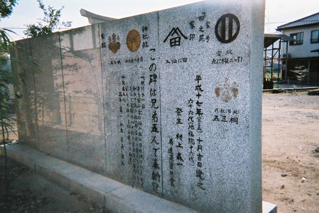 | 神社名石碑の裏側(創建・主要な沿革を刻んであります。) |